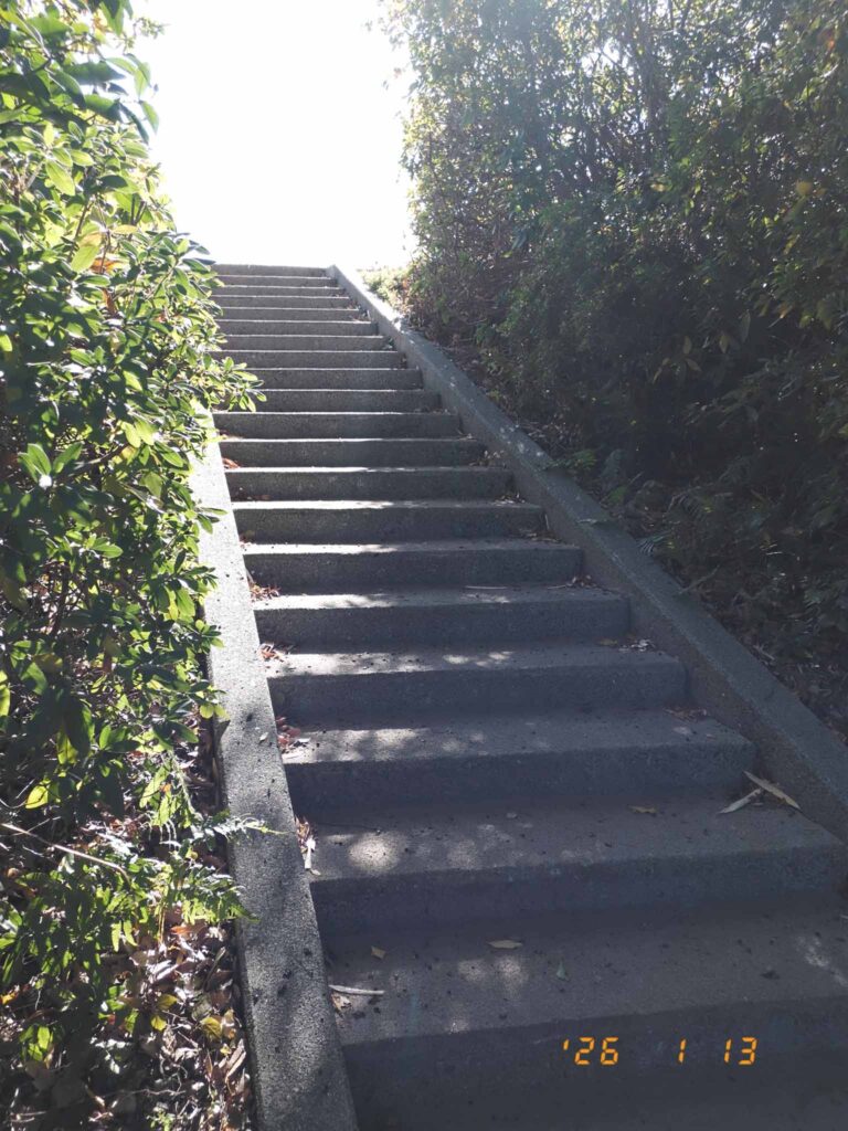 この階段いつもいい光が入ってる。
